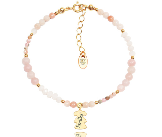 1373/2 bransoletka srebrna 925 pozłacana różowa kamień naturalny