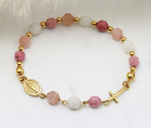 Bransoletka różaniec 1758/4, kamienie naturalne pastelowy róż
