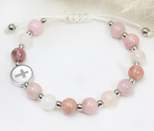 Bransoletka różaniec dla dziewczynki różowy 1813/3 z grawerem