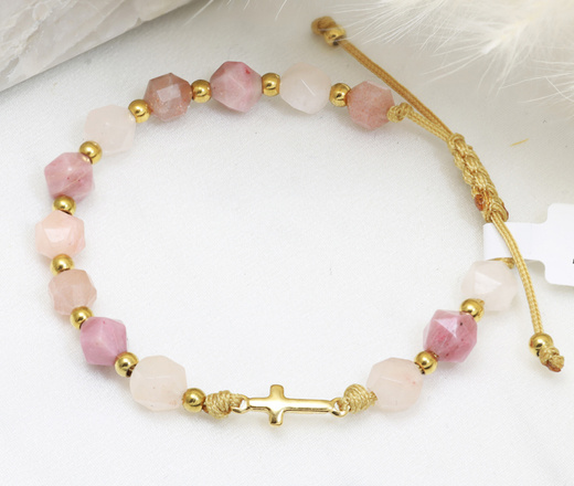 1728/1 bransoletka z rodonitem kamień naturalny złocona na sznurku