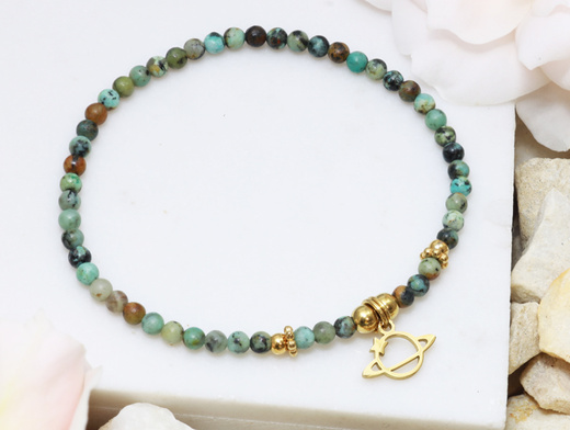 1728/10 bransoletka z turkusem afrykańskim złocona na gumce