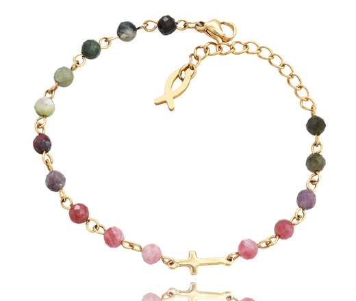 1737/11 bransoletka różaniec złota, kolorowe kamienie naturalne