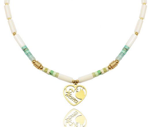 1673/1 bransoletka z kamieniami naturalnymi oraz grawerowaną koniczynką, pozłacana