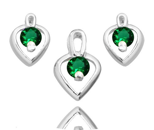 480/358 komplet srebrny 925 serca, cyrkonia zielona kolczyki wisiorek