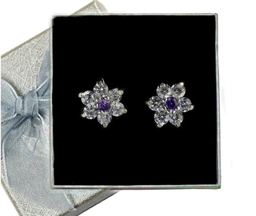 480/106 kolczyki srebrne kwiatki z granatową cyrkonia