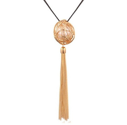 Nk 599/628 NASZYJNIK złoty,czarny łańcuszek i perła ozdabiana złotym drucikiem oraz frędzelkami z łańcuszków
