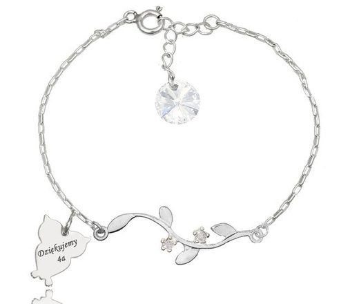 1122 bransoletka grawerowana dzień nauczyciela sowa gałązka srebro