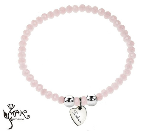 BR825 BRANSOLETKA Z GRAWEREM stal kryształki róż serce