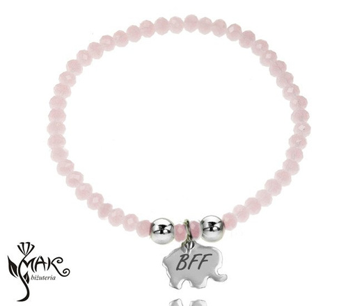 BR825 BRANSOLETKA Z GRAWEREM stal kryształki róż słonik