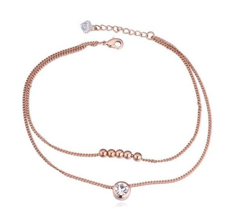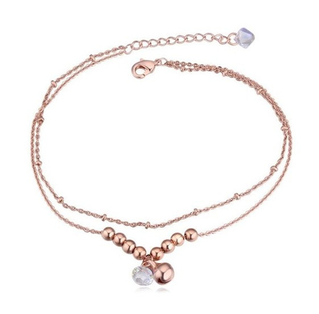 Br 599/641 BRANSOLETKA złota na stopę, podwójny łańcuszek , z cyrkonią i złotymi kuleczkami