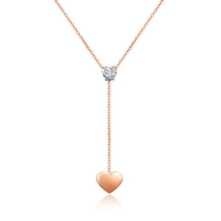 Nk 599/712 NASZYJNIK ze stali, łańcuszek i wisiorek z serduszkiem i cyrkonią, różowe złoto