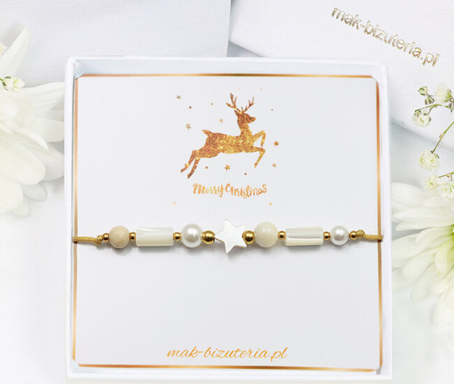 1731/1 bransoletka złocona z masą perłową i gwiazdką, upominek świąteczny