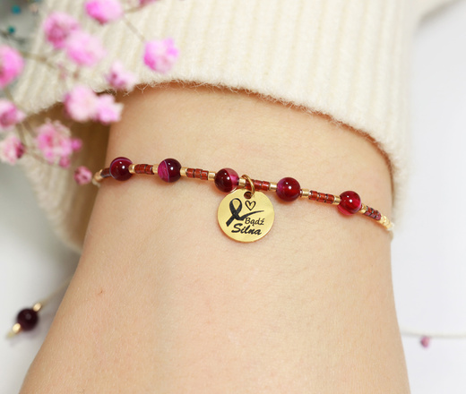 Różowa bransoletka z kamieniami naturalnymi z grawerem na gumce 1833