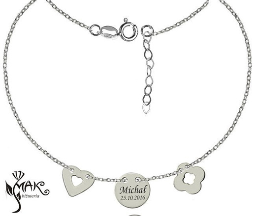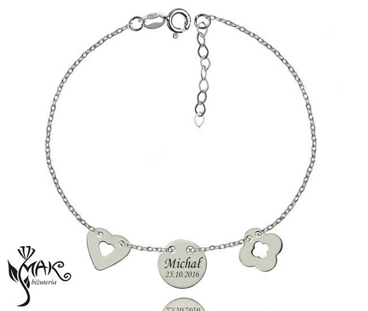 BR747 bransoletka grawerunek laser celebrytka srebro 925 3 zawieszki