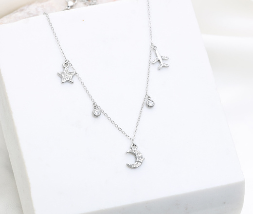 1560 naszyjnik srebrny stalowy z zawieszkami księżyc gwiazdka