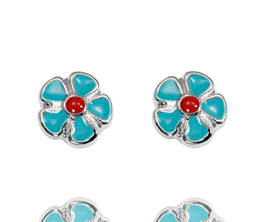 kolczyki dla dziewczynki niebieskie kwiatuszki z emalią 1777/4