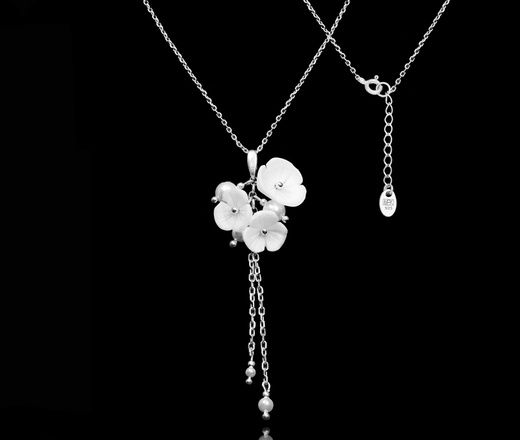 1665 naszyjnik na ślub perły z kwiatami srebrny 925