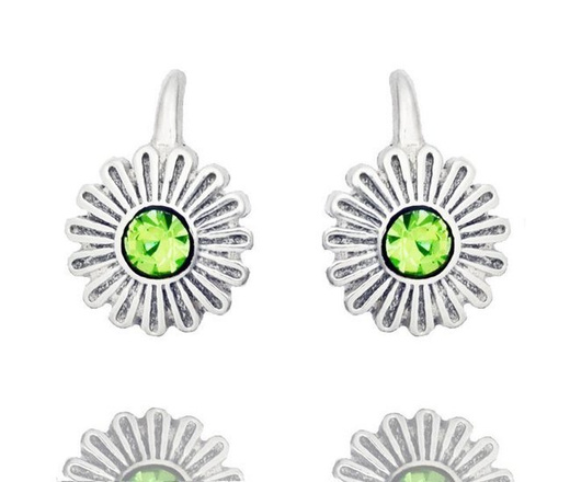 480/279 kolczyki srebrne 925 dla dziewczynki, zielona cyrkonia kwiatuszki