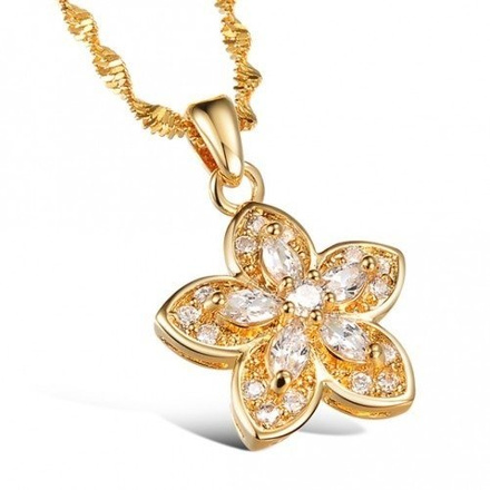NK599/466 NASZYJNIK żółte złoto cyrkonie kwiat