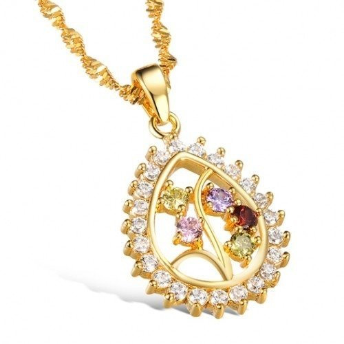 NK599/465 NASZYJNIK żółte złoto cyrkonie łezka kolorowa