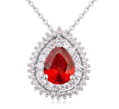 NK599/467 NASZYJNIK platynowany cyrkonie łezka czerwona