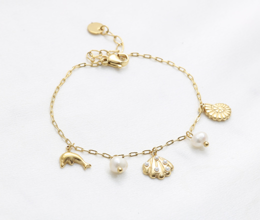 bransoletka pozłacana z perłami hodowlanymi i muszelką 1820