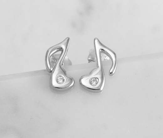 1861/2 kolczyki wkrętki z nutą i kluczem wiolinowym wysadzane cyrkoniami, srebro 925