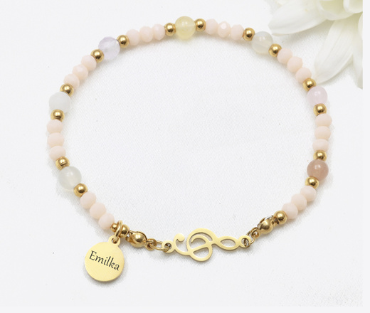 Bransoletka z kamieniami naturalnymi z grawerem klucz wiolinowy 1876/3
