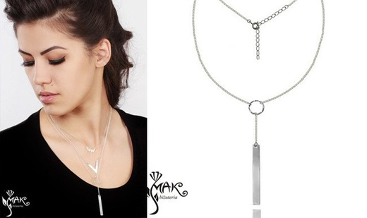 Nk 599/592 NASZYJNIK srebrny z trzema kółeczkami połączonymi ze sobą i cienkim prostokątem