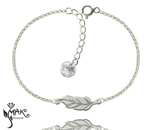 BR706 BRANSOLETKA piórko 100% SREBRO 925 grawer