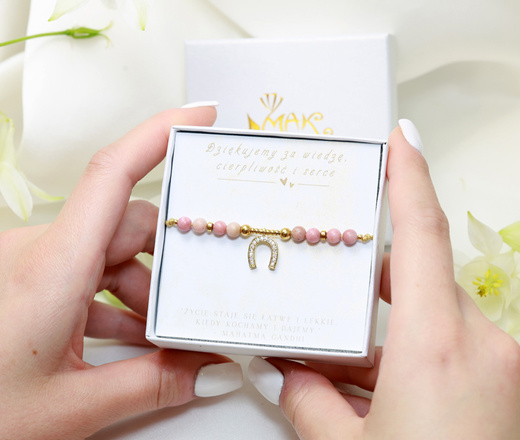 upominek dla nauczyciela bransoletka rodonit, podkowa 1807/10