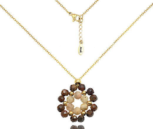 1734/12 beżowo-brązowy naszyjnik pozłacany z rozetą z kamieni naturalnych Premium