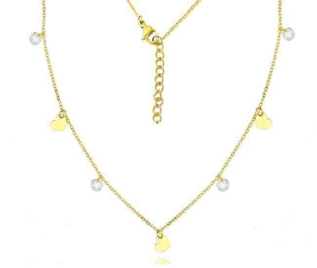 1251/2 naszyjnik złoty stalowy serca cyrkonie