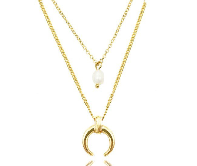 1251/3 naszyjnik złoty stalowy perła naturalna i róg obfitości podwójny