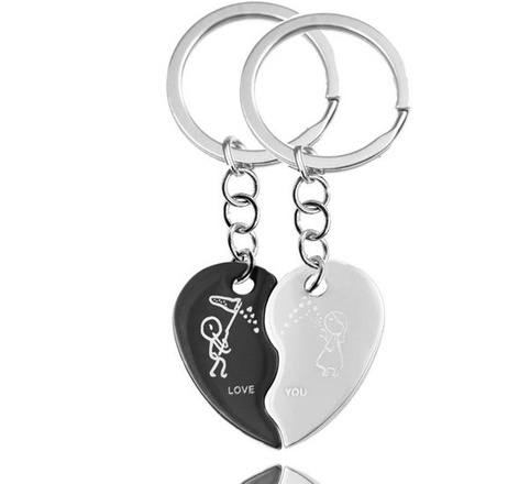 BK669 czarno-srebrne breloki do kluczy dla zakochanych serce dzielone na pół