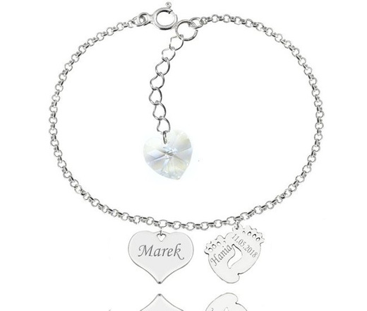 BR1004 BRANSOLETKA Z GRAWEREM srebro Swarovski Elements serce