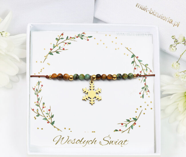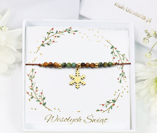 1731/7 bransoletka ze śnieżynką na sznureczku, upominek świąteczny