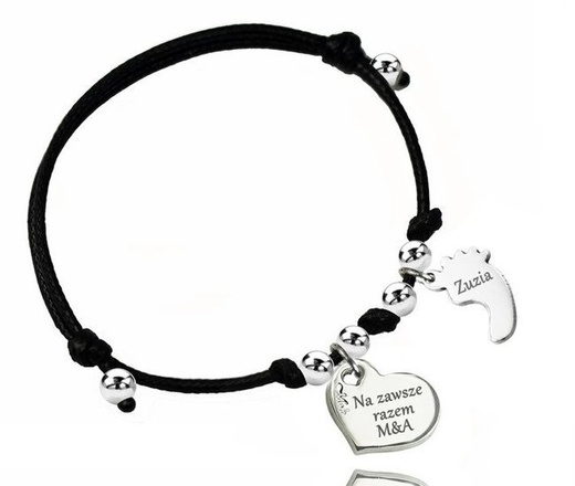 BR960 BRANSOLETKA z grawerem na sznureczku stópki serce zapięcia
