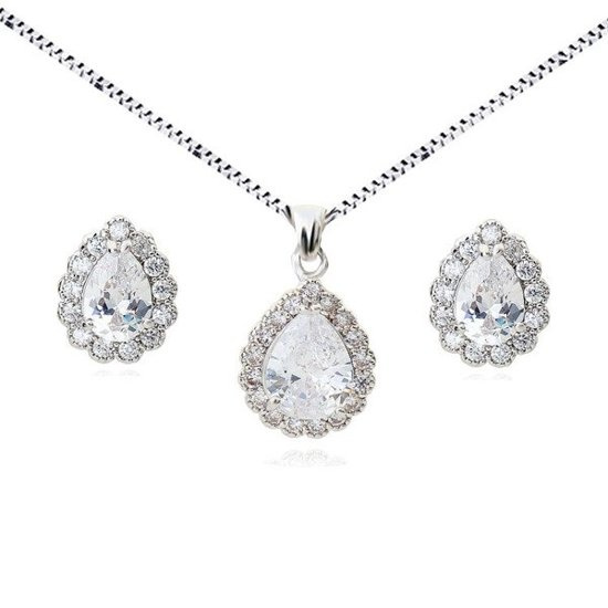 KPL 599/579 komplet kolczyki i wisiorek z krystalicznymi łezkami plus łańcuszek, srebrny