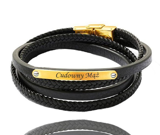 599/991 męska bransoletka z grawerem skórzana złota podwójna