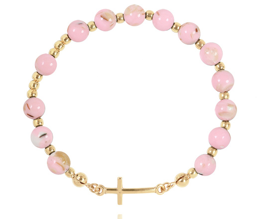 1571/19 bransoletka różaniec złota z krzyżem i koralikami z masy perłowej