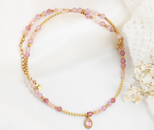 różowy naszyjnik pozłacany z kamieniami naturalnymi i cyrkonią 1765/1