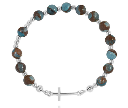 1571/22 bransoletka różaniec srebro 925 z kryształkami i krzyżem