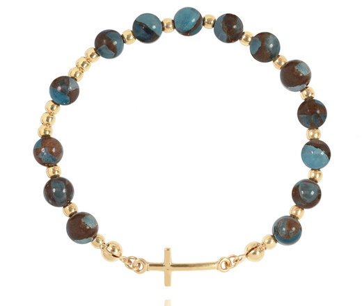 1571/10 bransoletka różaniec stal złocona z kamieniami naturalnymi