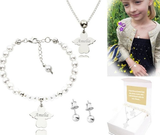 1074/1 komplet Swarovski Elements srebro 925 prezent na komunię urodziny