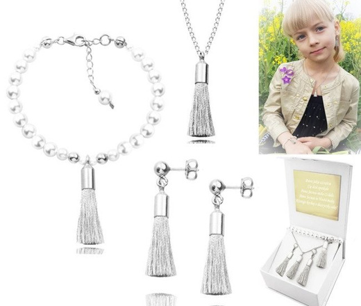 1074/2 komplet chwosty frędzle srebro 925 prezent na komunię urodziny