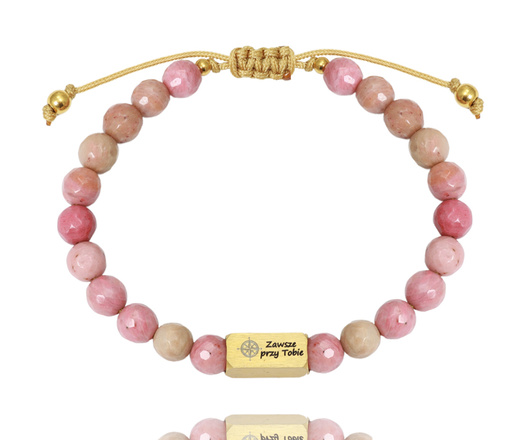 1734/8 różowo-beżowa bransoletka pozłacana z grawerem i kamieniami naturalnymi Premium
