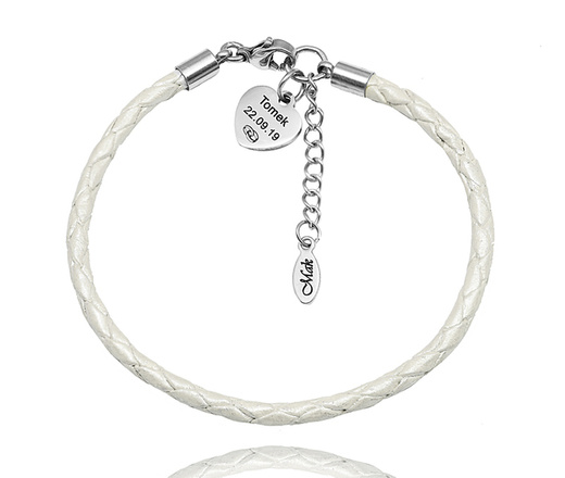 1638/3 bransoletka stal szlachetna z grawerem skórzany rzemień