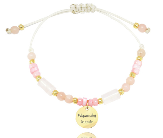 1534 bransoletka z grawerem kamienie naturalne różowe