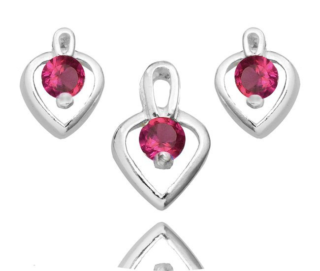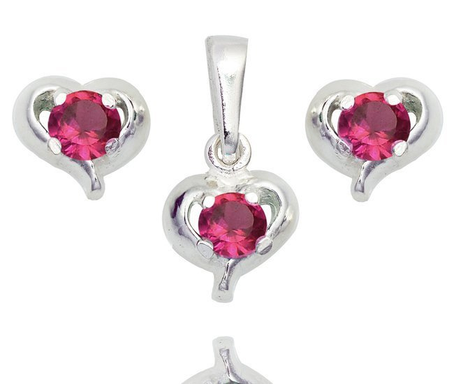480/369 komplet srebrny 925 serca, cyrkonia czerwona kolczyki wisiorek